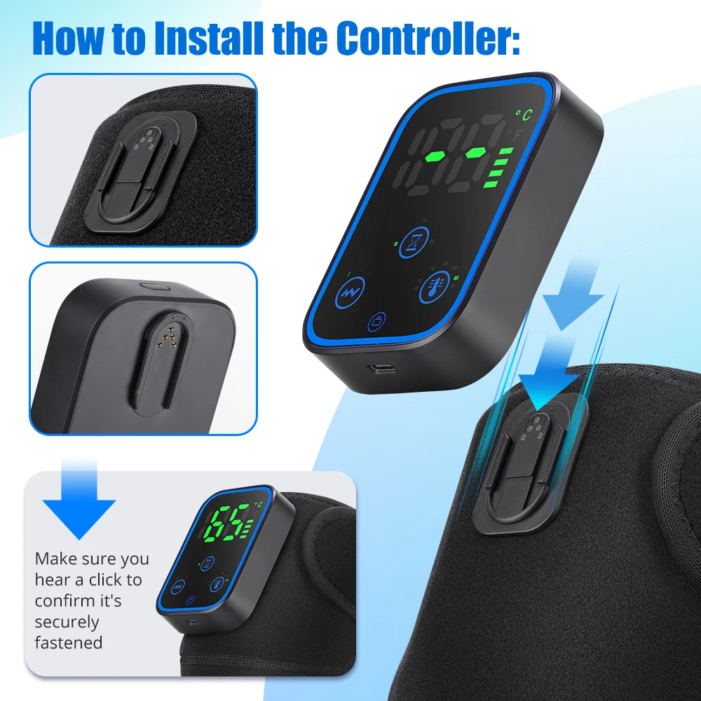 5.A joelheira aquecida oferece sete níveis de temperatura ajustáveis (40/45/50/55/60/65/70°C) e três opções de temporizador inteligente (15/30/60 minutos).Isso garante um controle preciso da temperatura para um uso seguro e eficaz sem o risco de superaquecimento.